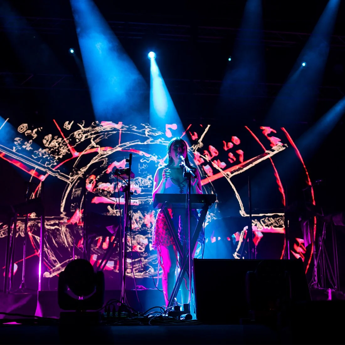 Custom look created for artist BlueM (Chiara Floris), a London based singer and songwriter, for her performance at VIVA! Festival. The look is made from eco cotton and knitted on domestic machines.