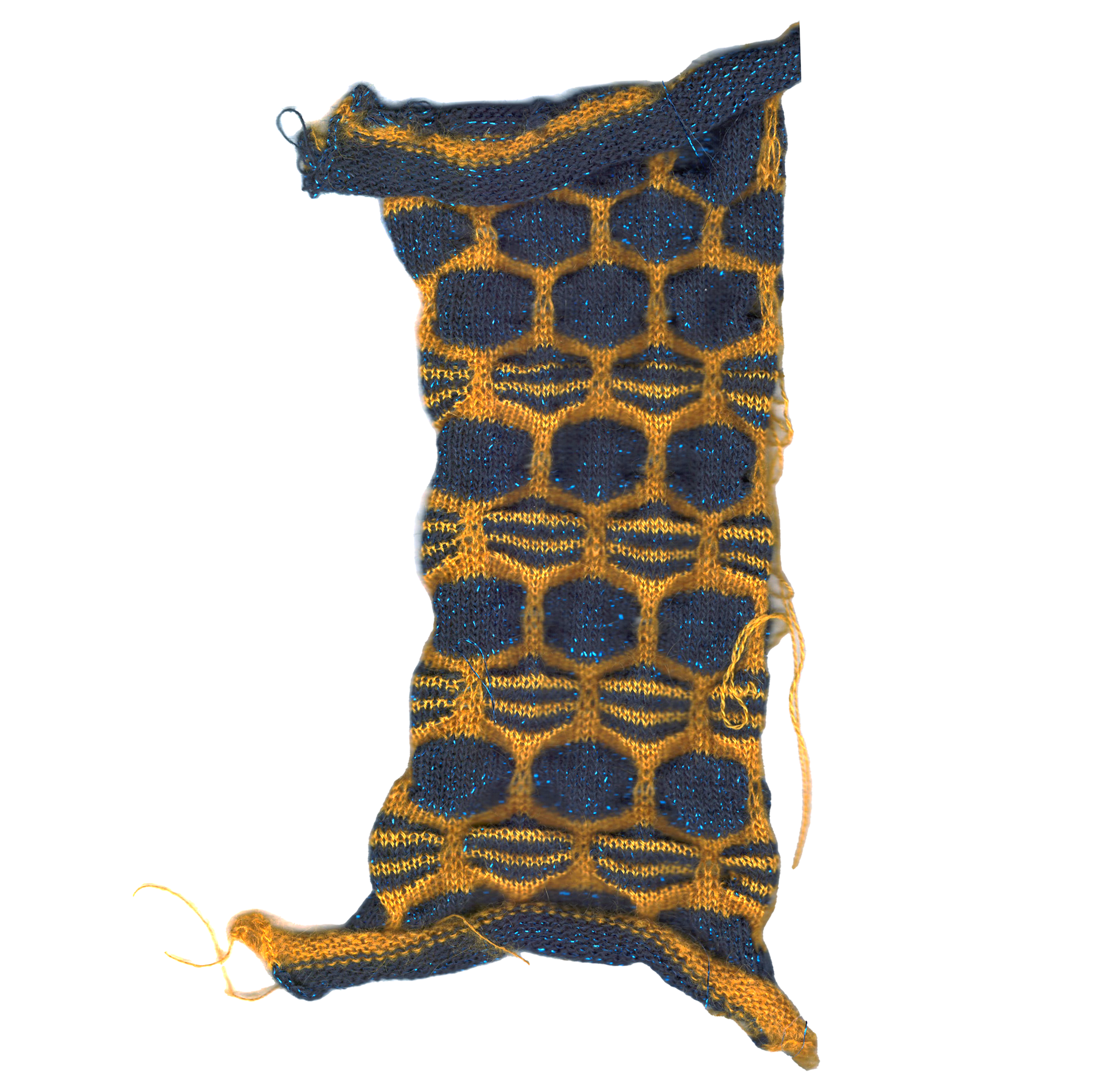 Fully fashioned knitted jumper in Navy and Mustard